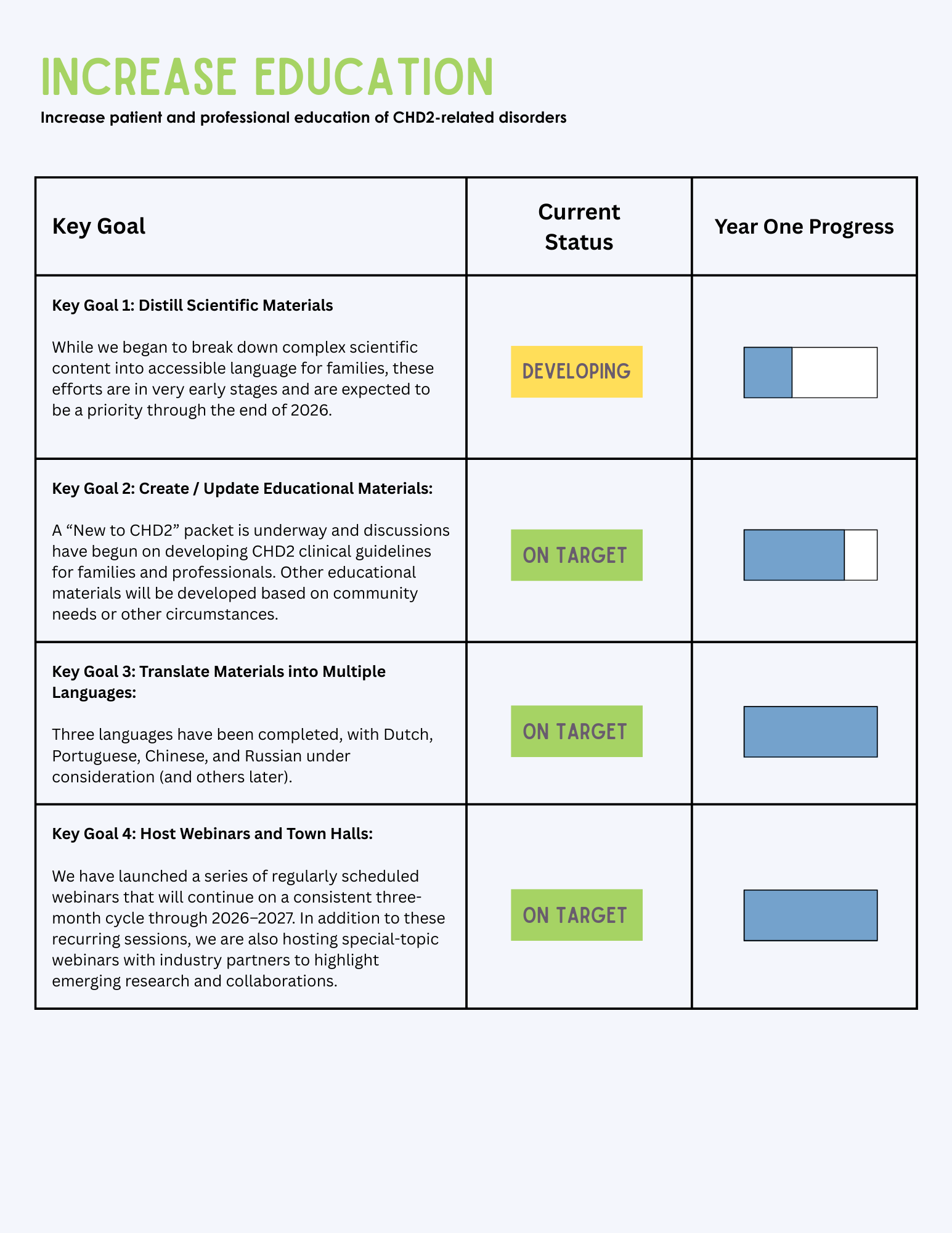 - Translate materials into multiple languages with the goal of increasing access to information about CHD2.